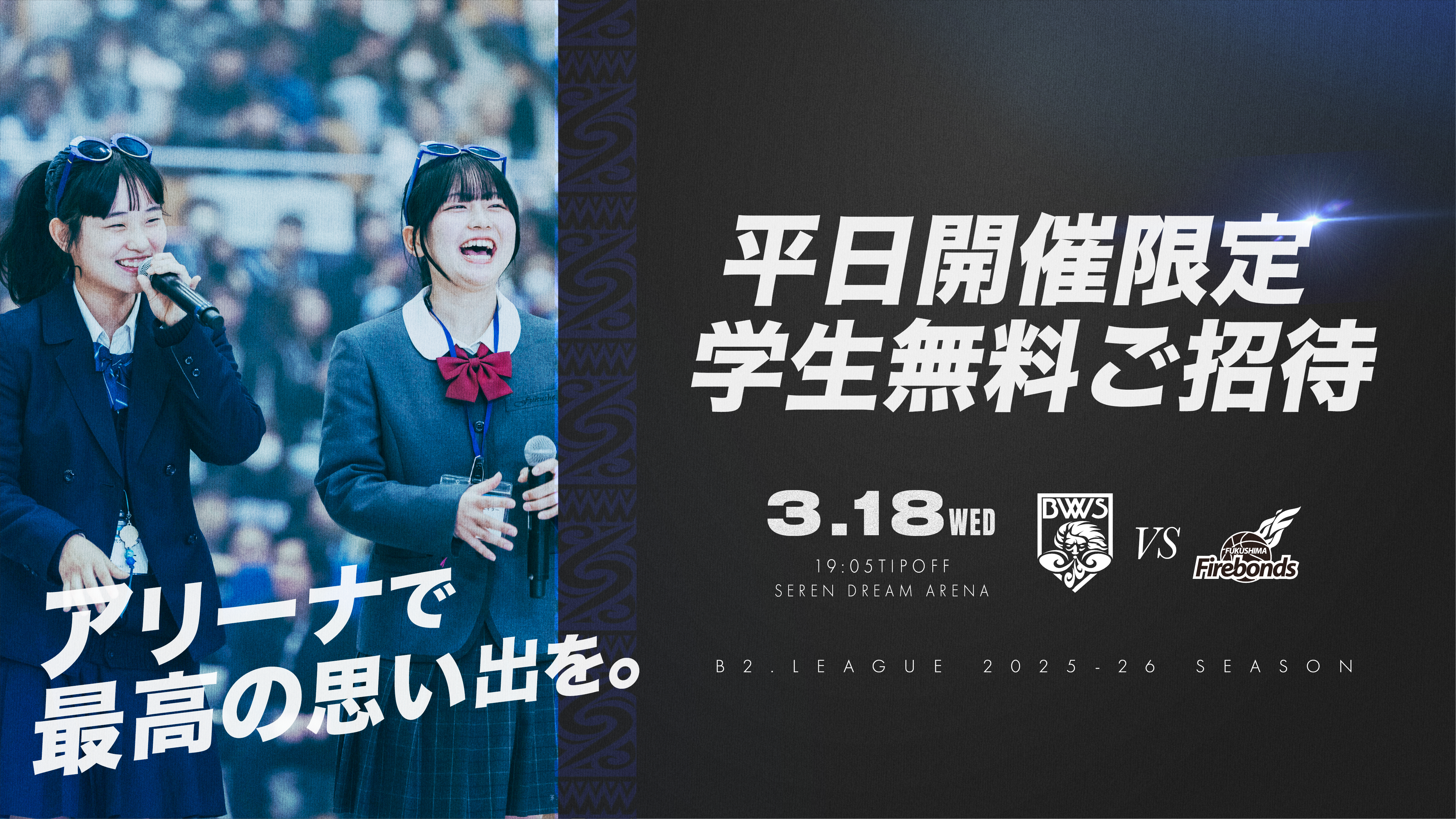 【第25節】平日開催限定 学生無料招待のお知らせ
