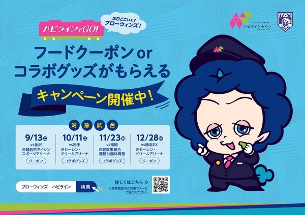 対象試合日にハピラインを利用し会場にご来場いただくと、先着200名様にオリジナルBOOZコラボステッカーや会場内飲食店舗で使える300円クーポンなどをプレゼント!
