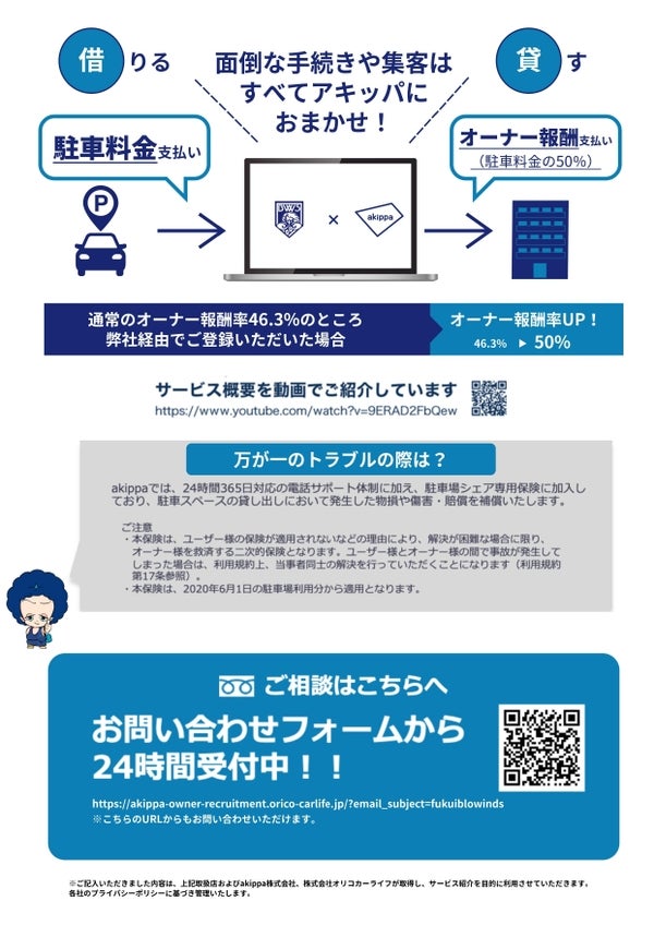 「akkipa」連携 駐車場オーナー募集のお知らせ
