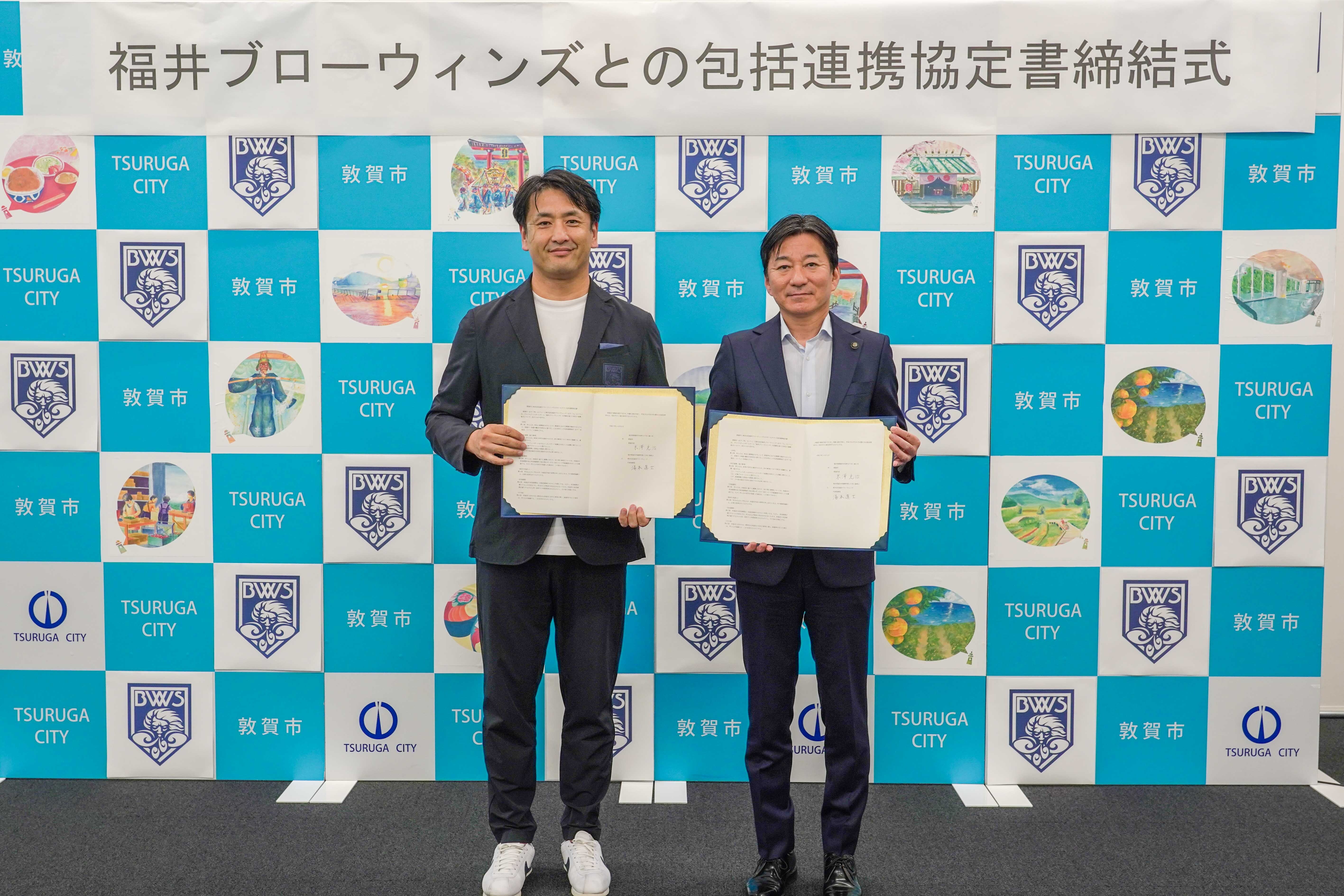 この度、福井ブローウィンズは、2025年10月3日(金)に敦賀市役所にて敦賀市との包括連携協定を締結いたしましたので、ご報告いたします。