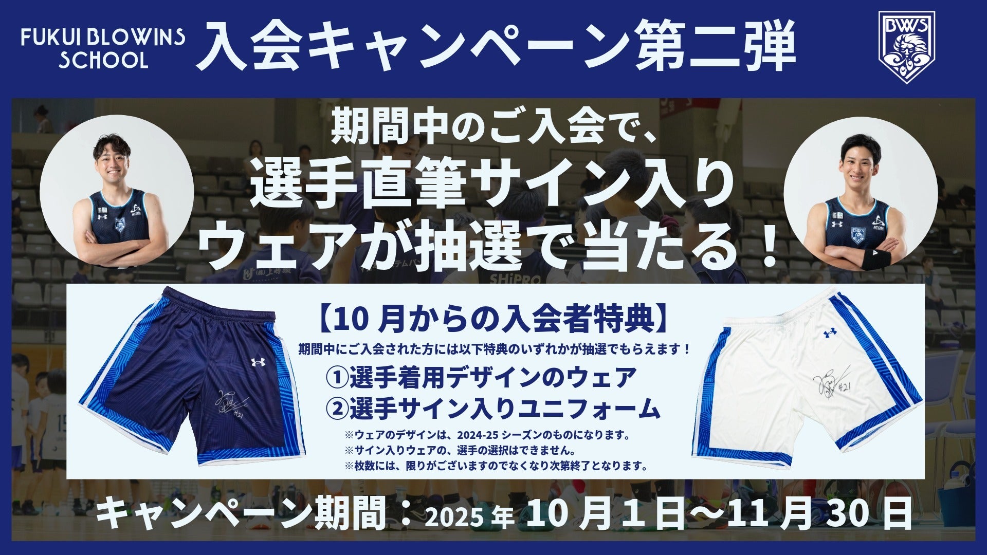 この度、福井ブローウィンズバスケットボールスクールでは、新規入会キャンペーン第2弾を実施することとなりましたので、お知らせいたします。