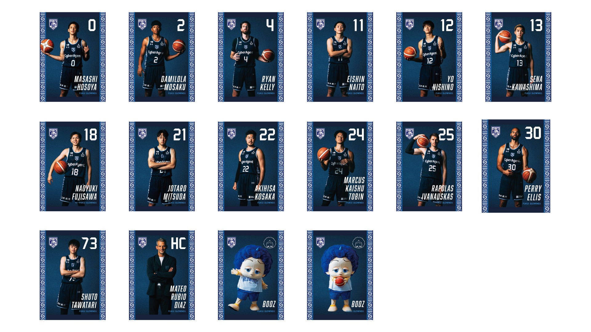 全選手の宣材写真を使用したデザインだけでなく、マテオヘッドコーチやBOOZも登場した全16種類のラインアップですべてのカードがコレクションしたくなる仕上がりに。