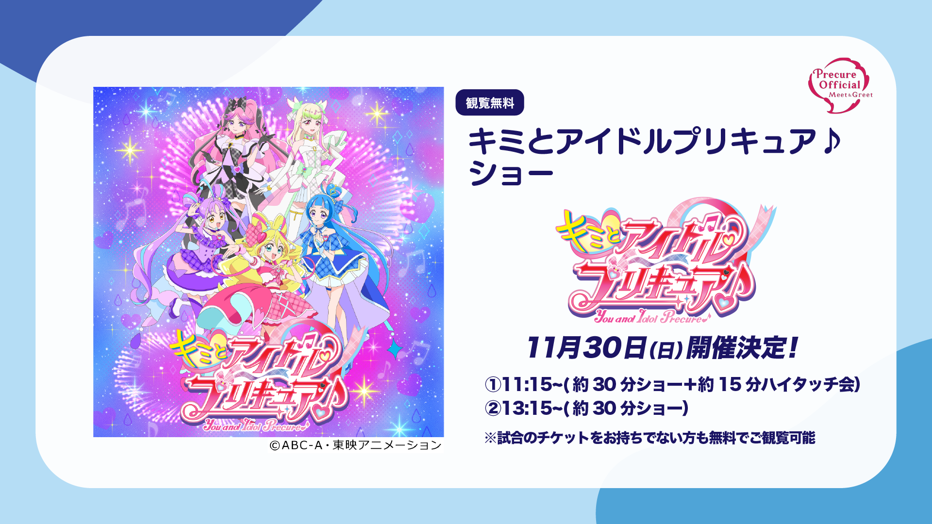 11月30日(日)キミとアイドルプリキュア♪ ショー 開催時間決定のお知らせ