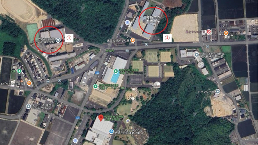 ② 【GAME2のみ】敦賀市立看護大学(約150台):福井県敦賀市木崎78-2-1
