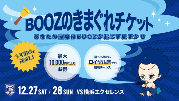 12月27日(土)、28日(日)に開催される横浜エクセレンス戦にて、「BOOZのきまぐれチケット」を販売いたします。