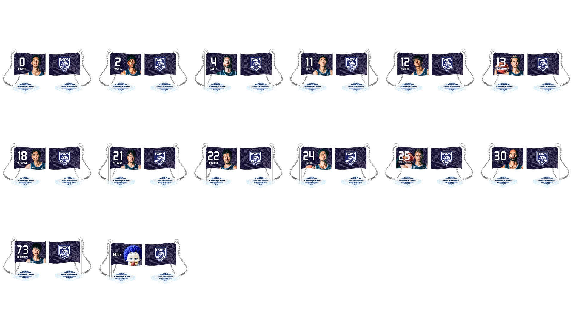 全13選手に加え、マスコットキャラクター「BOOZ」を含む全14種のデザインをラインナップ。