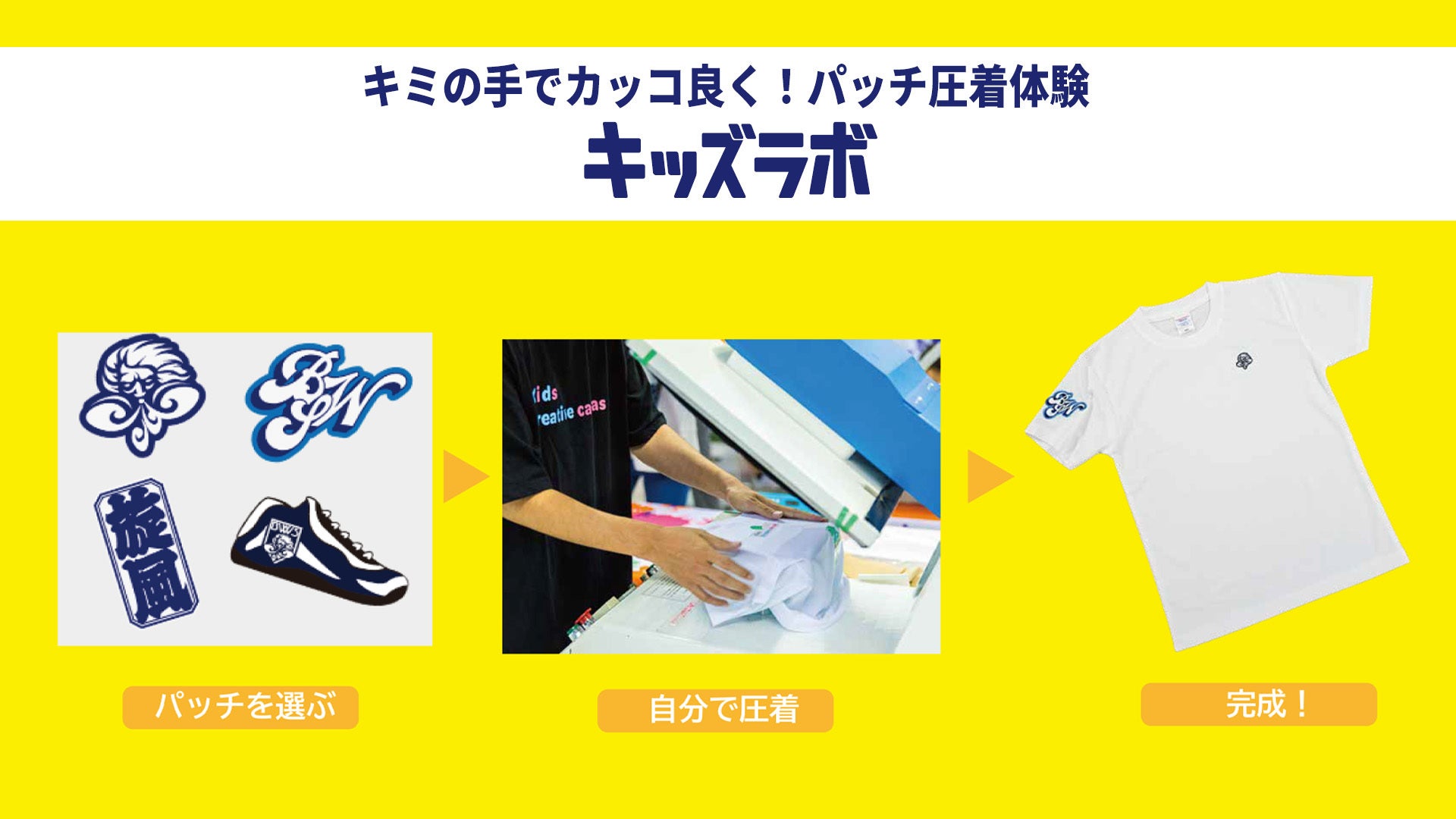 好きなパッチを選んで、その場でグッズに熱圧着できる「キッズラボ」。
