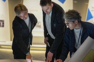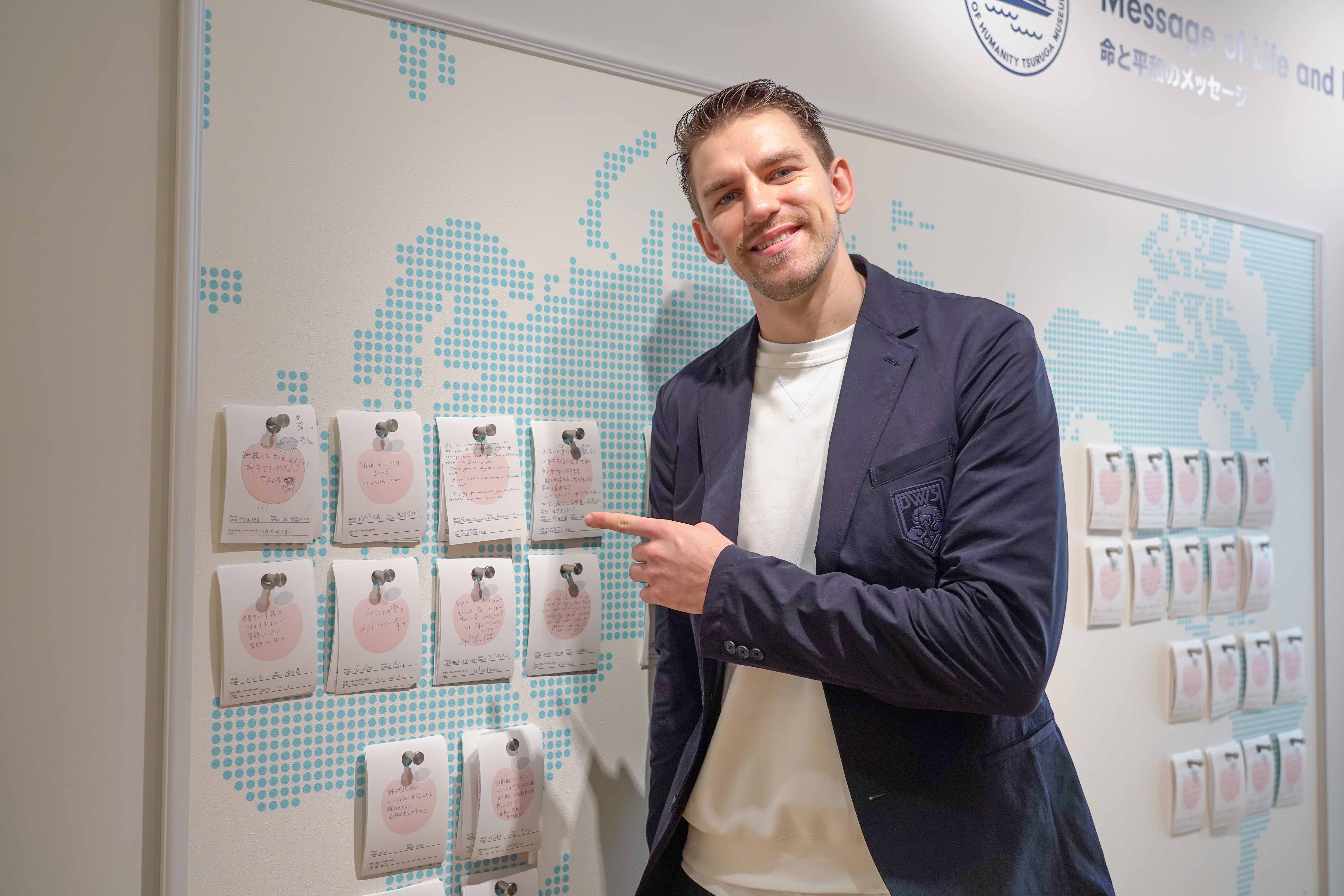 1940年代に、敦賀港にリトアニア カウナス領事代理・杉原千畝氏が発給した「命のビザ」を携えたユダヤ難民が上陸。ムゼウムには、当時のユダヤ難民の航路やビザなどの展示があり、手代木GM、ラポラス選手は職員の方の説明を受けながら、館内を見学しました。