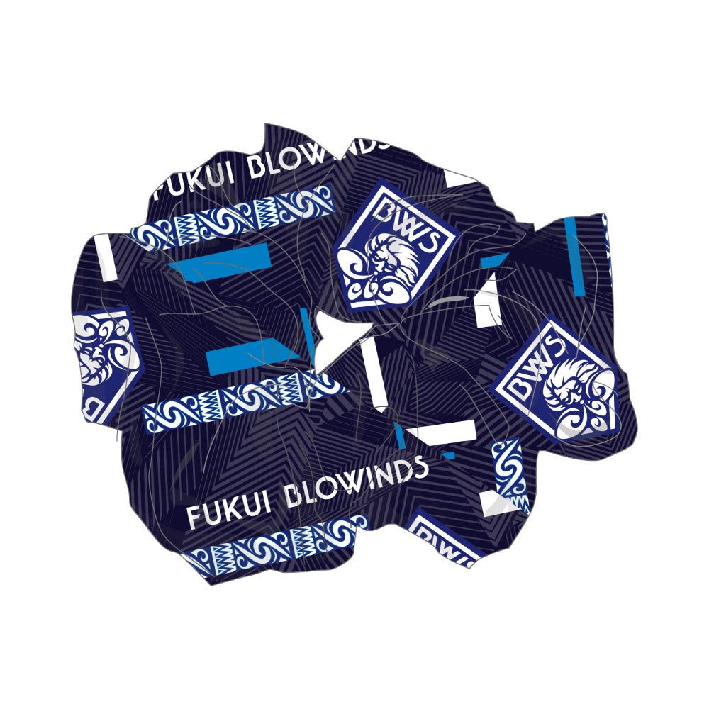 裏面には、福井ブローウィンズのモチーフでもある“風”をイメージしたグラフィックを大胆に配置。