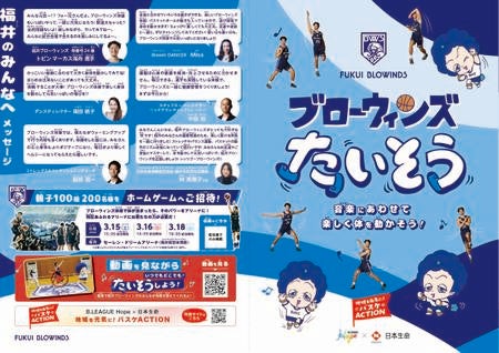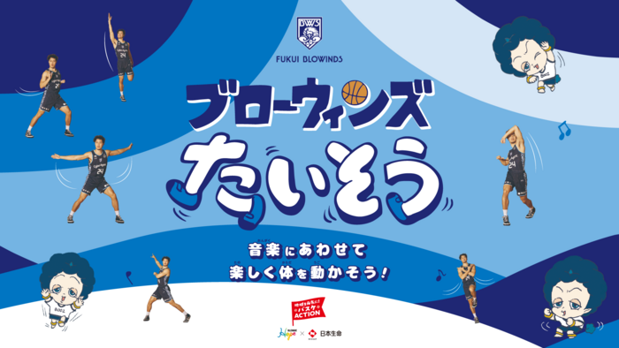 この度、「2025-26シーズン B.LEAGUE Hope×日本生命 地域を元気に!バスケACTION」活動において日本生命福井支社さまと連携しクラブ初となる健康増進を目的とした体操コンテンツ「ブローウィンズたいそう」を開発しましたのでお知らせいたします。