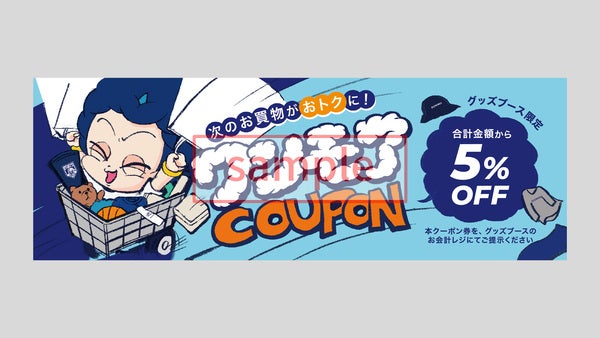 次のお買物にてクーポンをご提示いただくと、グッズを5%オフでお買い求めいただけます。