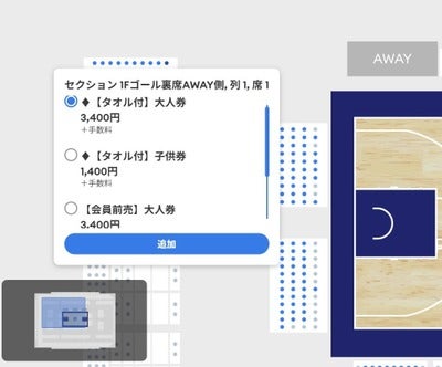 ※車いす席、およびベンチ向かい見切れ席、プレミア席は対象となりますので、該当券種をご選択の上決済をお願いいたします。