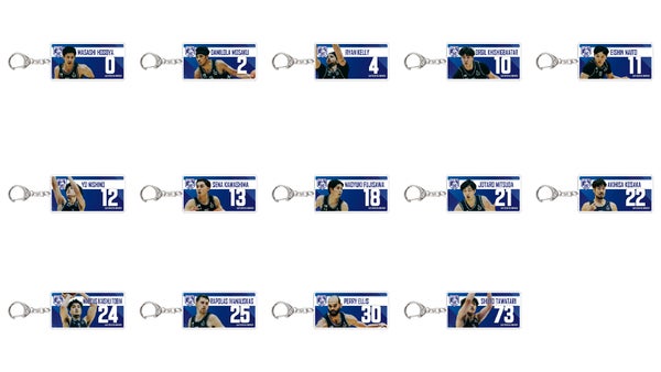 2025-26シーズンのプレーシーンを使った選手のアクリルキーホルダー。