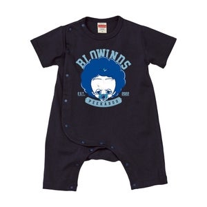 おしゃぶりを加えたベビーBOOZがとても可愛い、ベビーカバーオール。