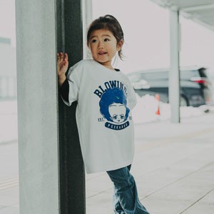 BOOZを基調としたカレッジ風のデザインが可愛いお子様用サイズのキッズTシャツが登場。全体的に青いカラーリングでまとめることで統一感があり、日常でも着やすいTシャツとなっております。