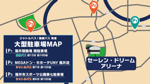 ※ GAME1は福井市スポーツ公園第七駐車場のみ、GAME2はMEGAドン・キホーテUNY福井店のみ利用可能です。