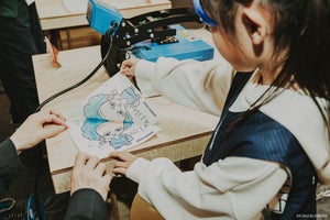 ご自身で描いた塗り絵が、”その場で”好きなグッズや私物に圧着できる体験コンテンツをご用意しております。
