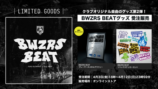 クラブ初のオリジナル楽曲「BWZRS BEAT」に込められた、選手たちの特徴や個性から生まれた“リリックロゴ”のステッカーセットが登場。