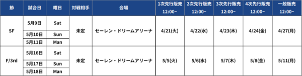 ※QUARTERFINALSのホーム開催の可能性がなくなったため、チケットの販売は実施いたしません。