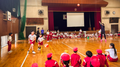 事前に先生たちのご尽力もあり、児童の皆様から自然と選手コールが巻き起きるなど、子どもたちに体を動かす楽しさ、スポーツをやる楽しさ・観る楽しさを伝えるとともに、子どもたちの笑顔と元気からパワーをいただく素敵な時間となりました。